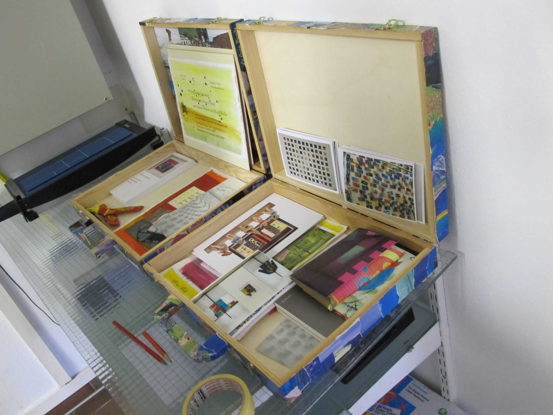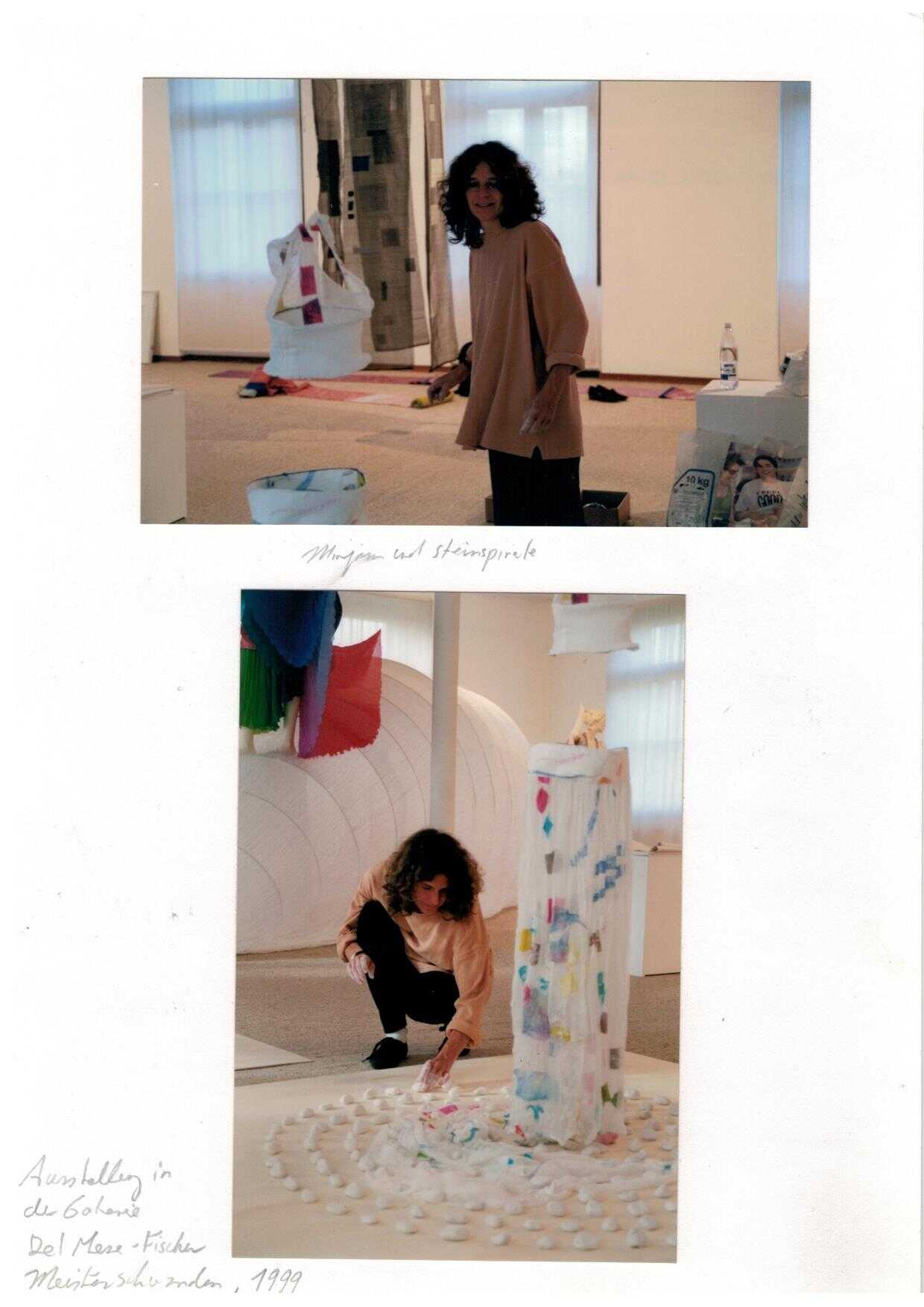Mein erstes Atelier in der Au Wädenswil konnte ich zusammen mit dem Vater meiner Kinder und mit Gerold Loewensberg als Architekt bauen. 25m2 für Kunst mit Sicht auf die Halbinsel Au. Ich hatte solche Freude am erstellten Atelierhaus, dass ich grosse Säcke mit weissen Steinen kaufte und meinen Raum zu Einweihung mit einer Steinspirale gestaltete. Die Bauabnahmeinspektion getraute sich nicht den Raum zu betreten. Ein Mann jedoch zog seine Schuhe aus und tanzte über die Steinspirale zum Fenster, um dieses zu kontrollieren. Ebenso traute sich unsere weiße Katze Mizi in das Steinlabyrinth hinein. Erst zwei Wochen später entfernte ich die runden Steine und richtete mein Atelier ein.
